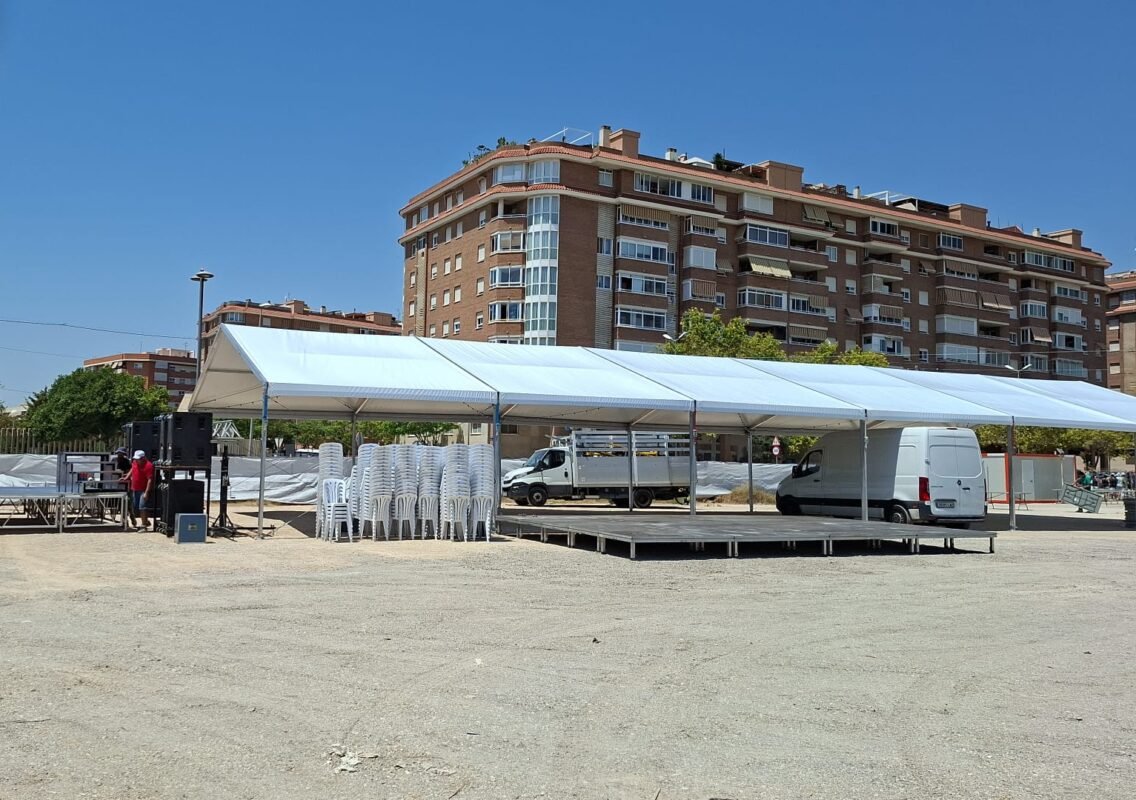 Instalación de carpas a dos aguas para las Fiestas de San Juan en Alicante