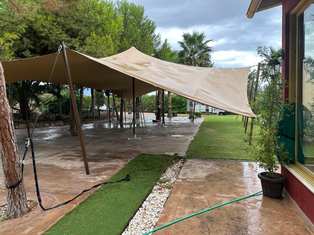 En esta ocasión, el equipo se desplazó hasta Muchamiel (Alicante) para realizar el montaje de una espectacular carpa beduina, también conocida como carpa stretch, para un evento privado al aire libre.