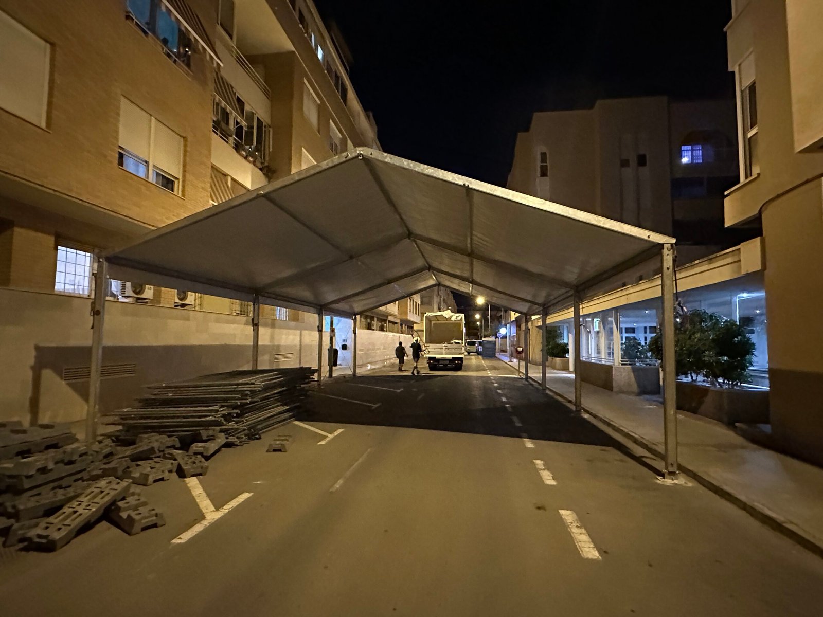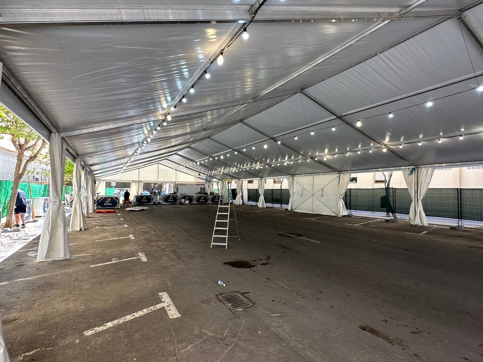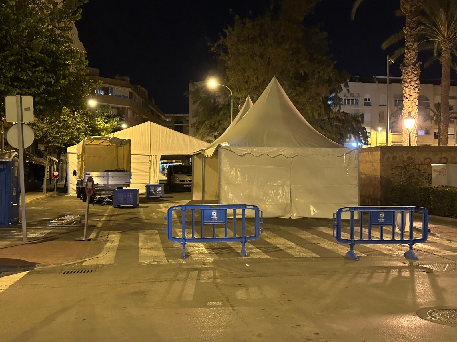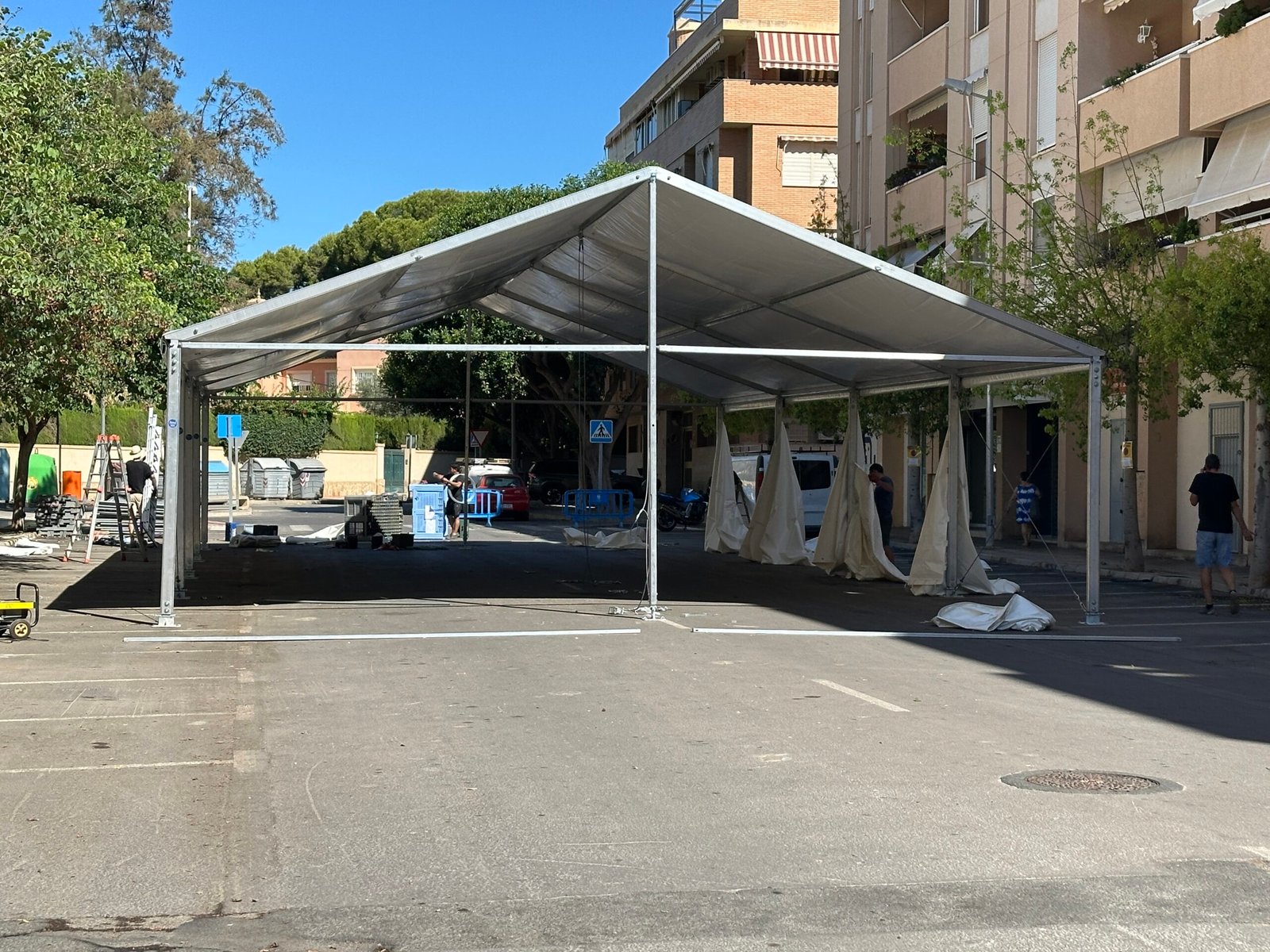 Instalación de carpas a dos aguas para las Fiestas de San Juan en Alicante