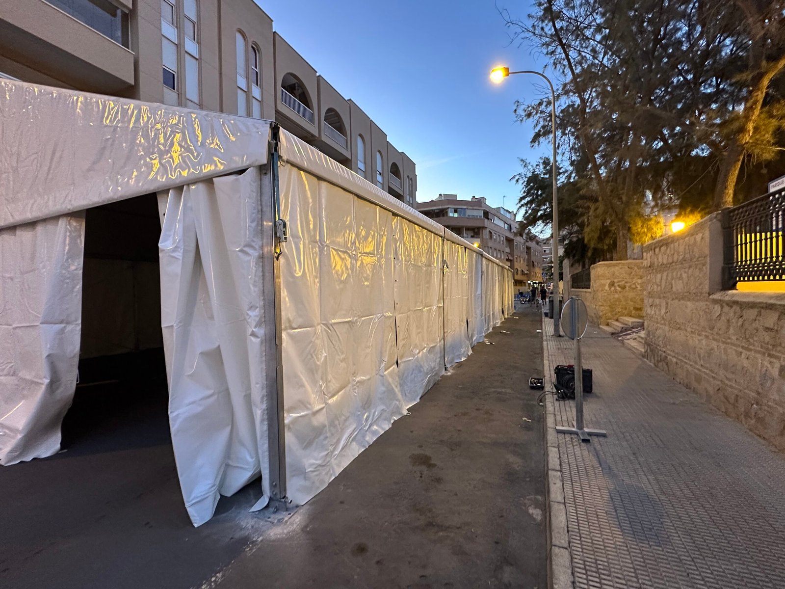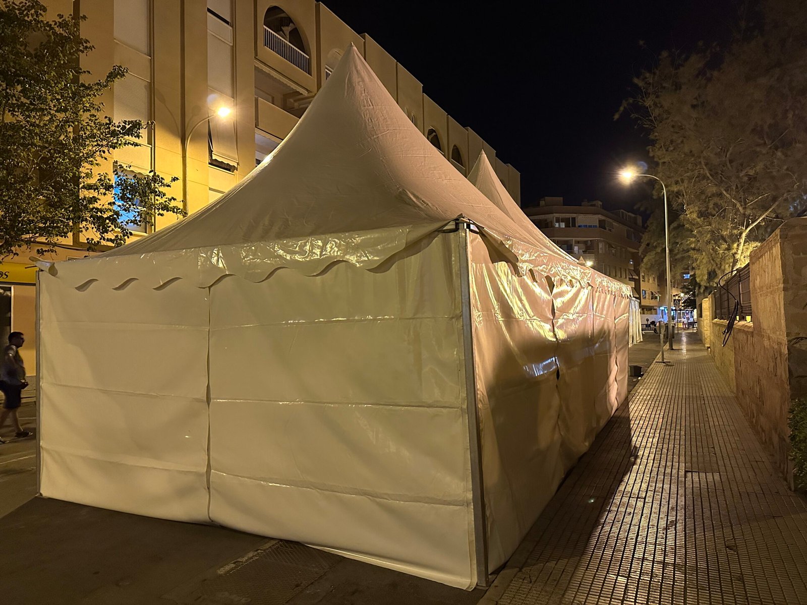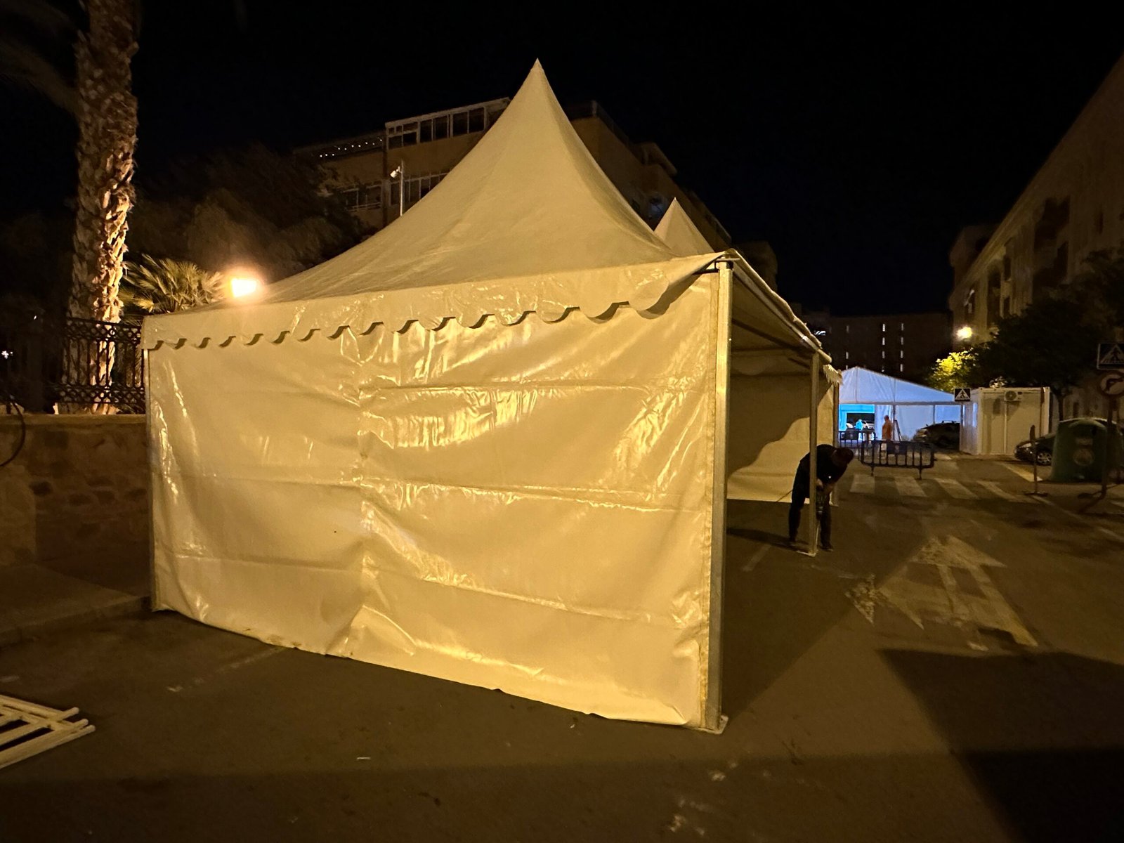Instalación de carpas a dos aguas para las Fiestas de San Juan en Alicante