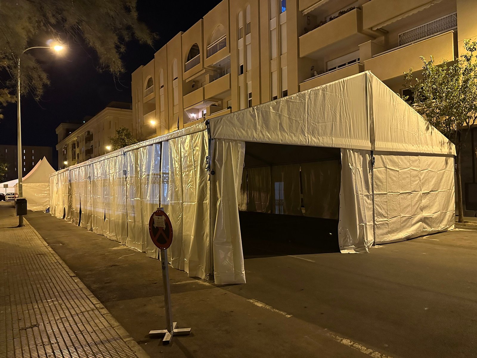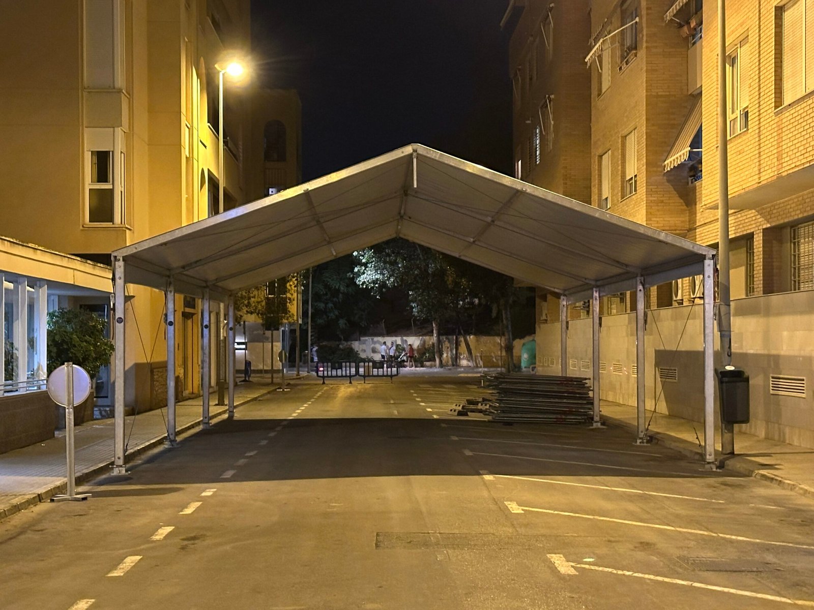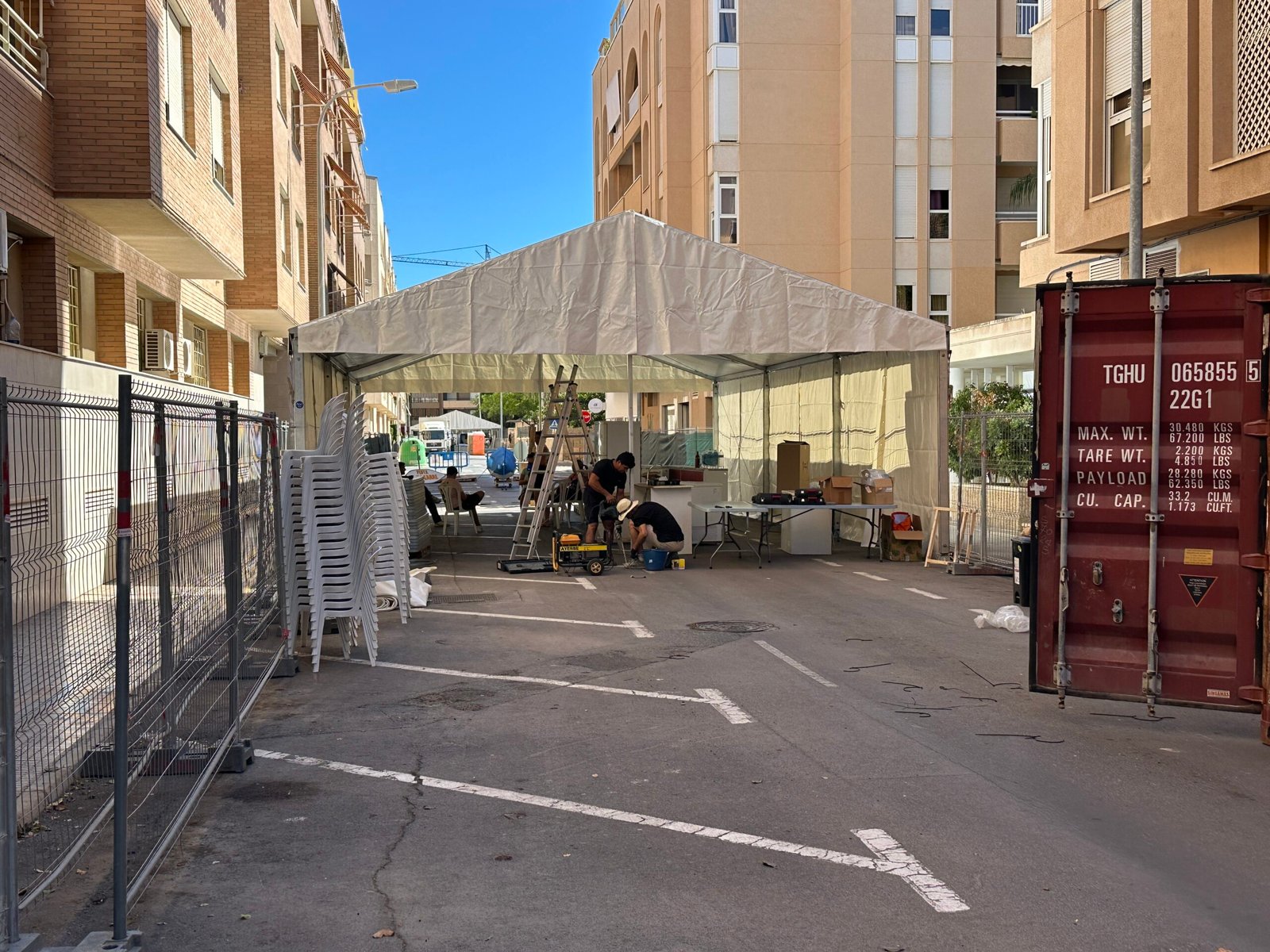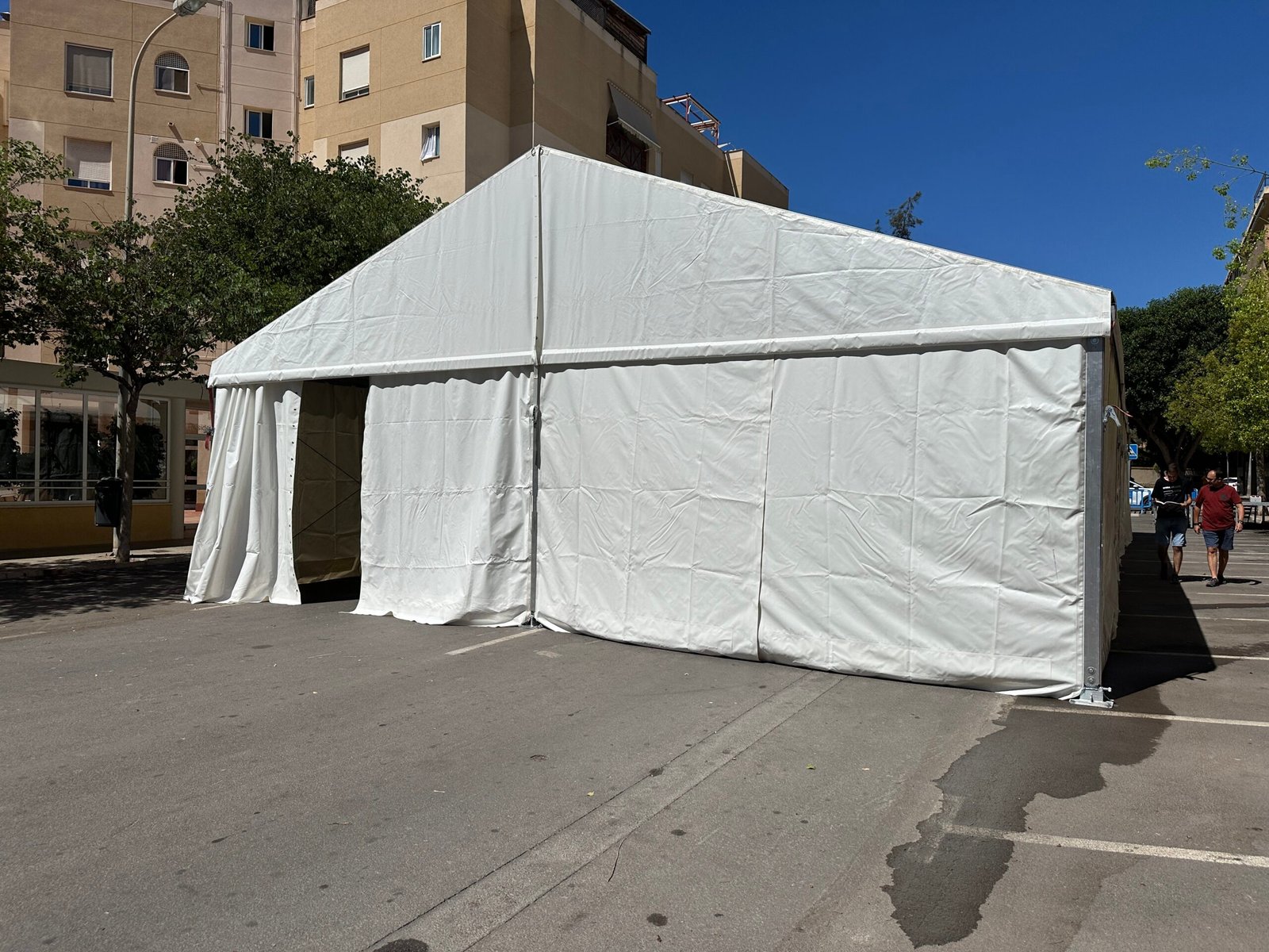 Instalación de carpas a dos aguas para las Fiestas de San Juan en Alicante