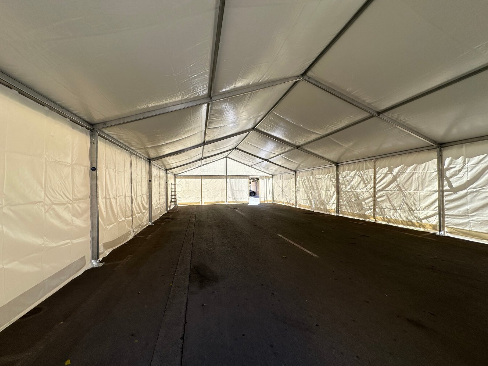Carpas a dos aguas de 10 metros de pórtico: más amplias, pensadas para acoger a un mayor número de personas, especialmente útiles en áreas de paso o actividades colectivas.