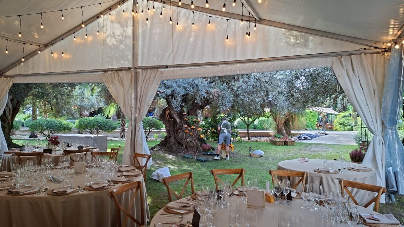 Magia y elegancia bajo los olivos: instalación de jaimas y carpas transparentes en Elche por Cerramientos Arkia