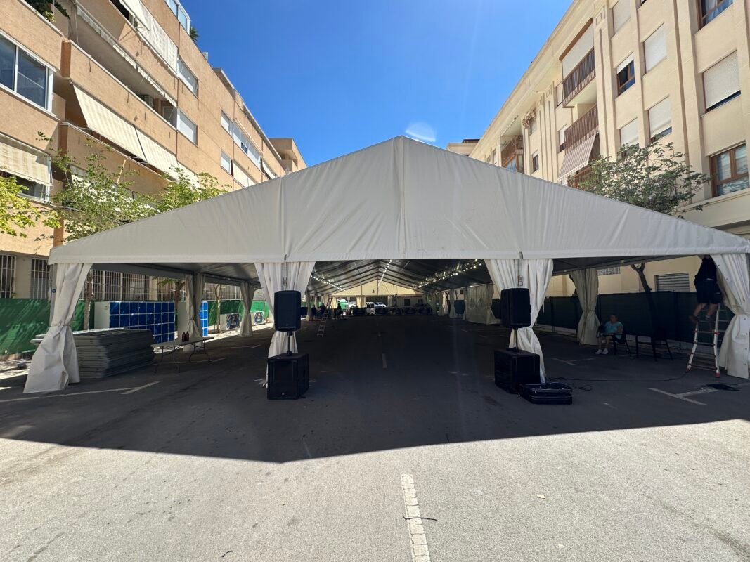 Instalación de carpas a dos aguas para las Fiestas de San Juan en Alicante