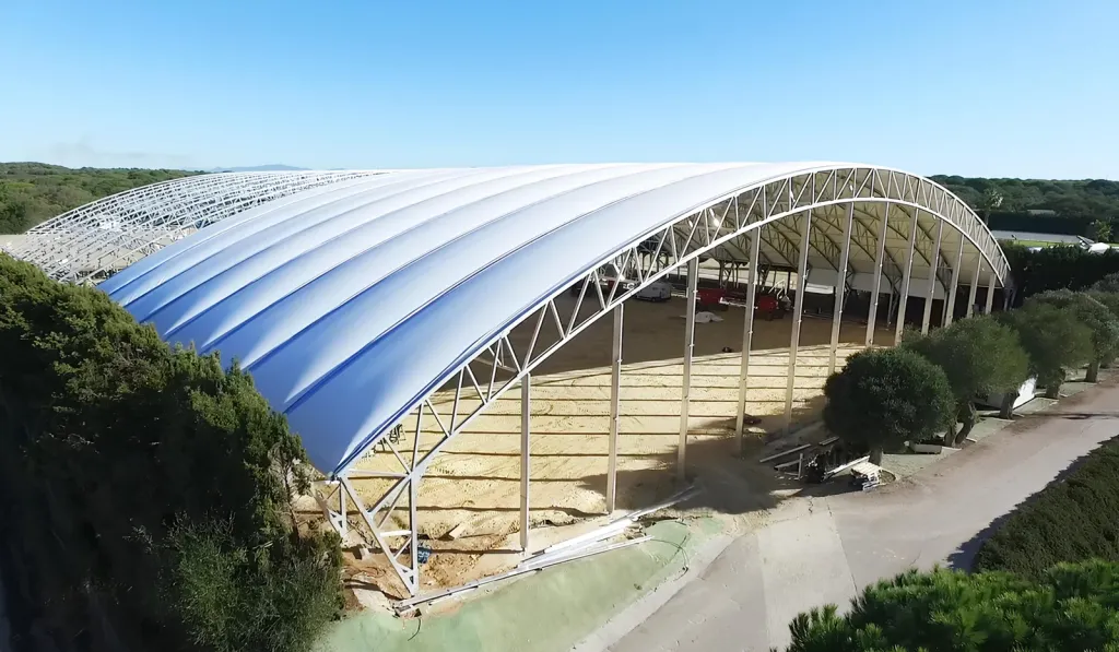 En Arkia Estructuras somos expertos en la instalación de carpas para pistas de pádel en Alicante y alrededores. Ofrecemos soluciones a medida para cubrir pistas exteriores, protegiendo a jugadores y pistas de las inclemencias del tiempo, y permitiendo el uso de las instalaciones durante todo el año.