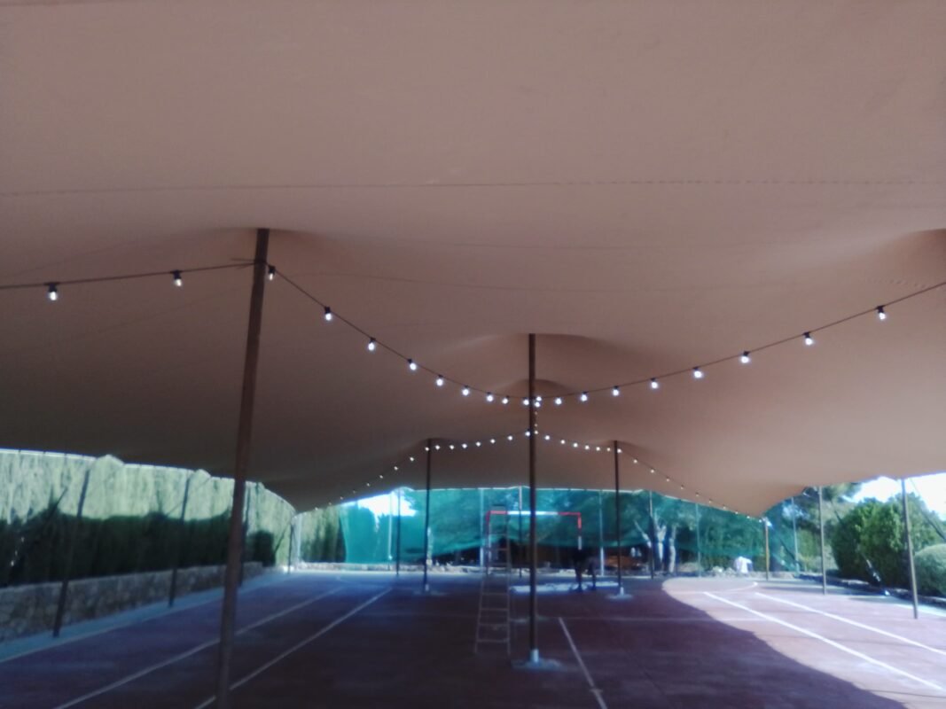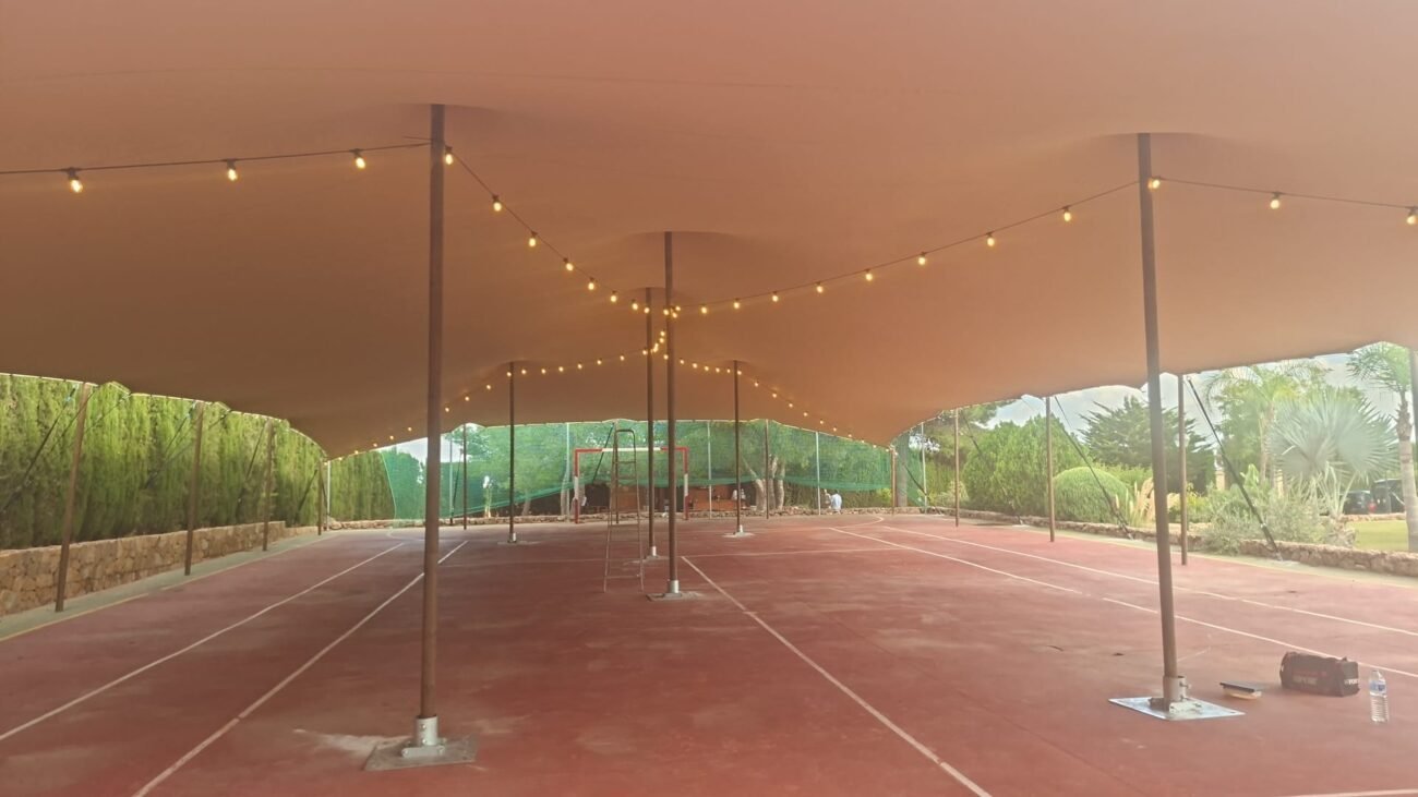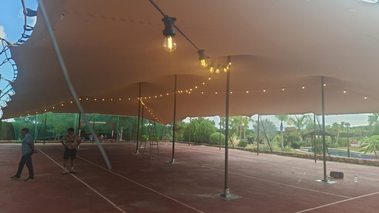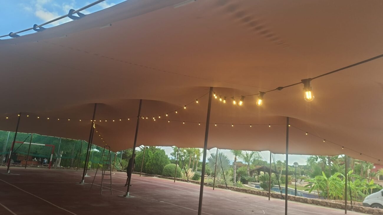 El resultado ha sido un espacio con encanto mediterráneo, en plena armonía con el entorno natural, donde el diseño curvado de la lona y la calidez de la iluminación crearon un ambiente mágico y acogedor.