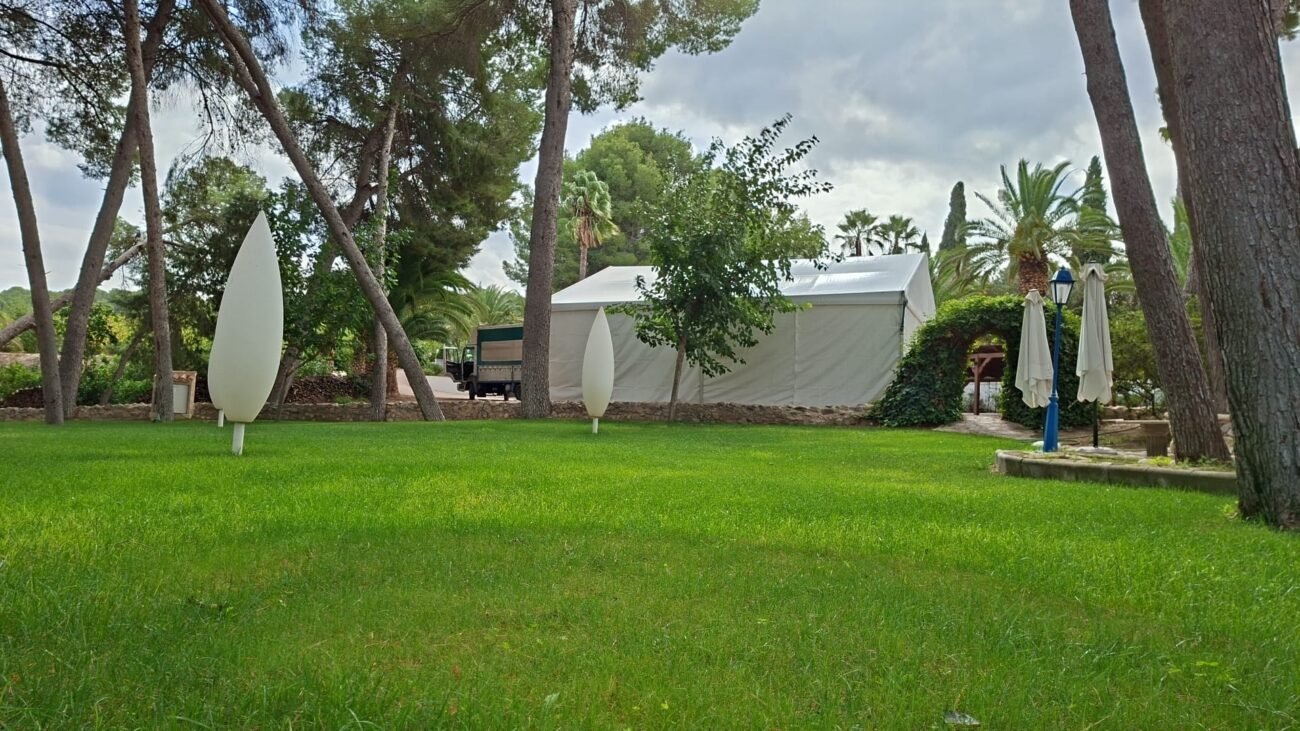 Los Montesinos (Alicante) — Las bodas al aire libre están viviendo su mejor momento, y en Cerramientos Arkia lo sabemos bien. Recientemente hemos tenido el placer de instalar una carpa a dos aguas para una boda espectacular, donde cada detalle fue cuidadosamente pensado para crear una atmósfera mágica, elegante y funcional.