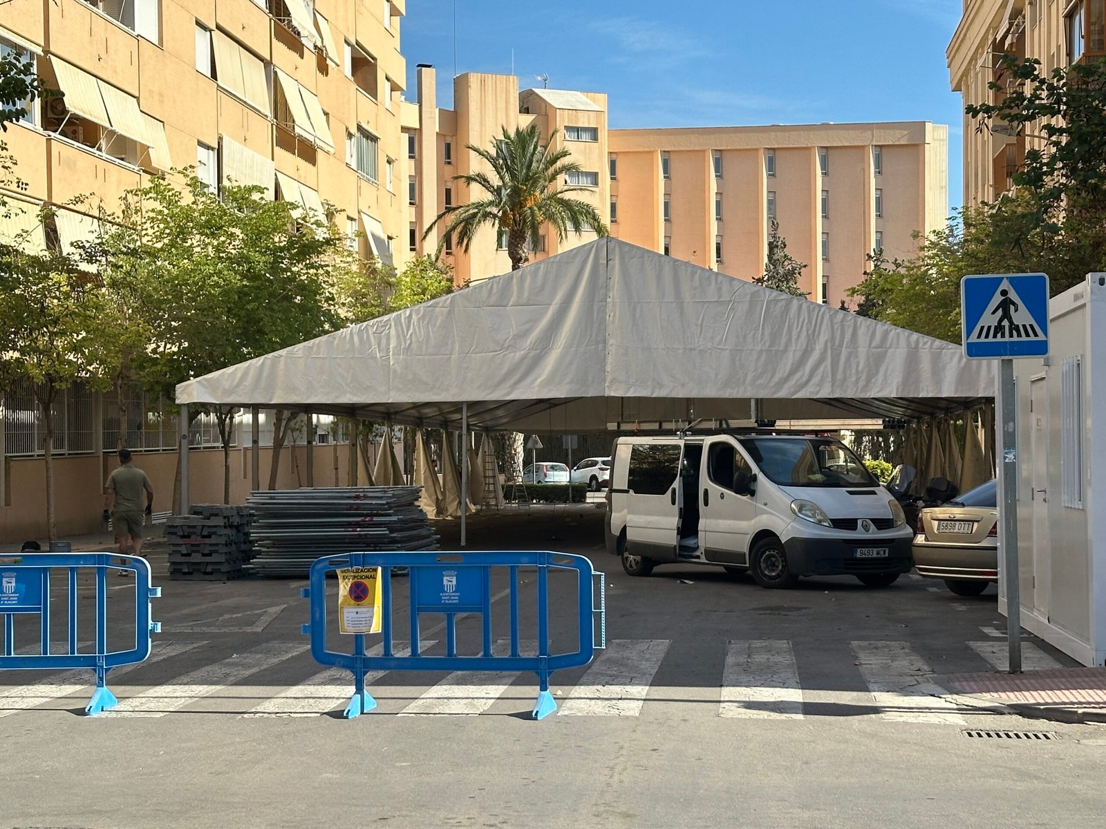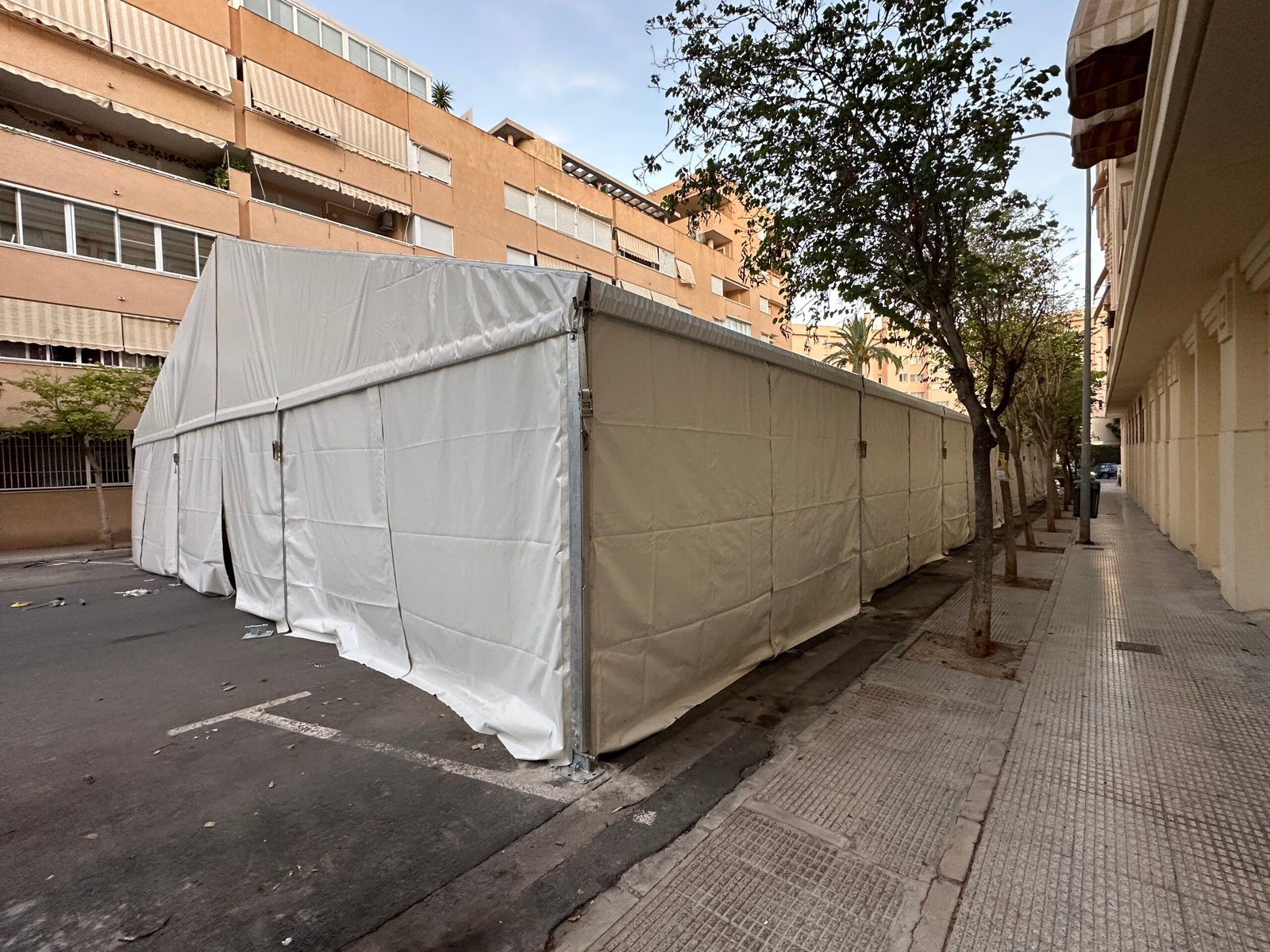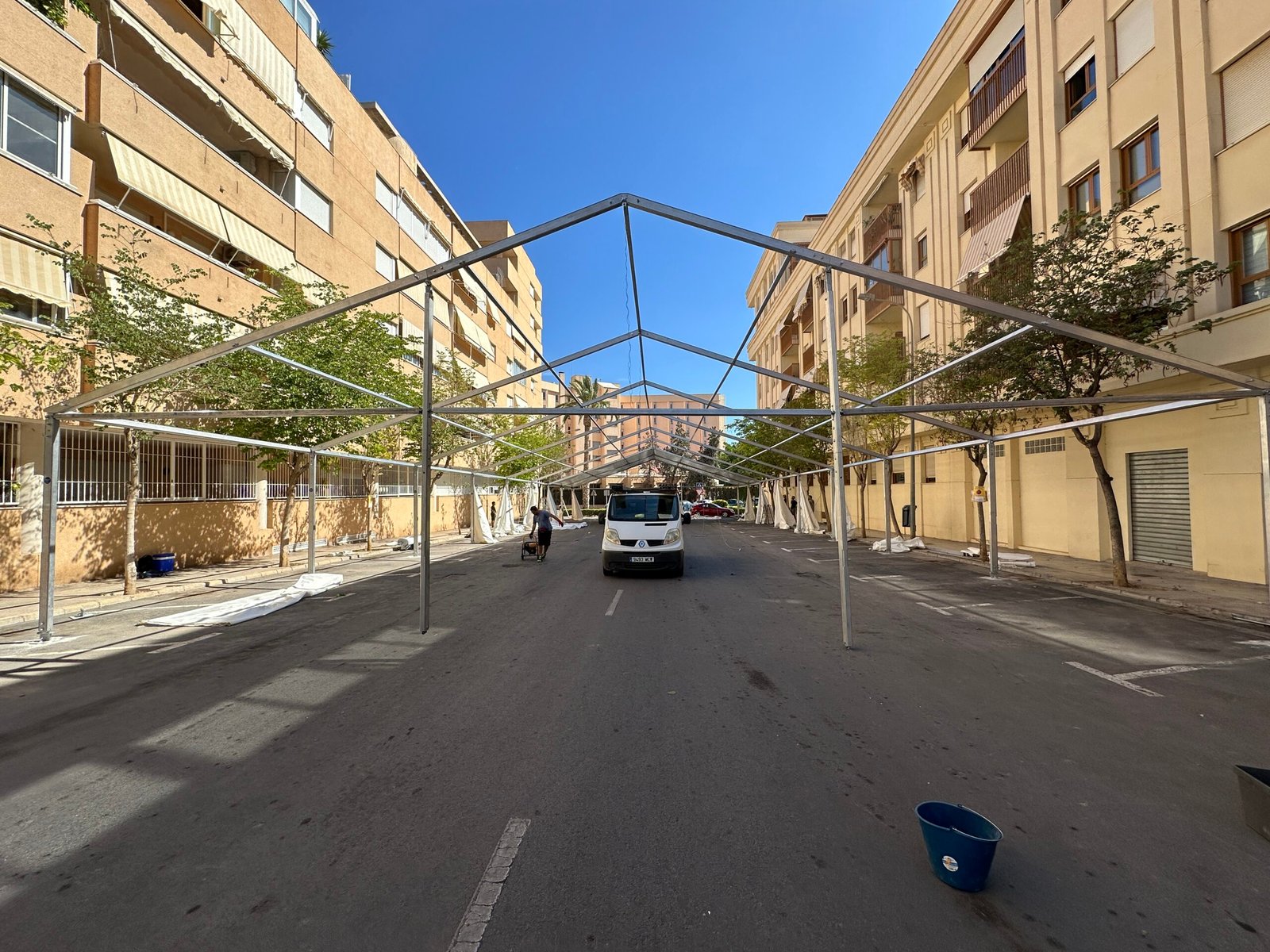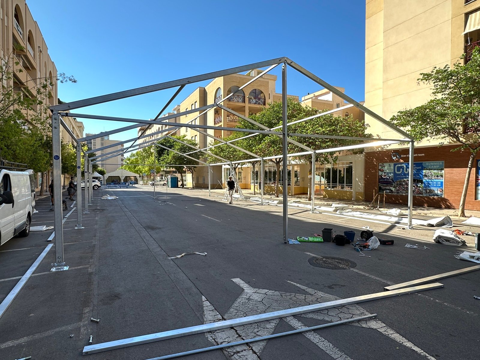 Instalación de carpas a dos aguas para las Fiestas de San Juan en Alicante