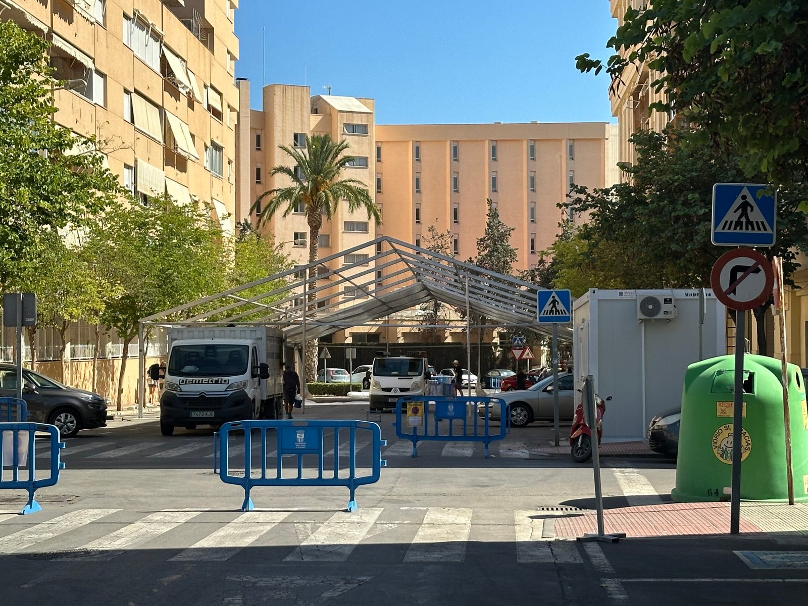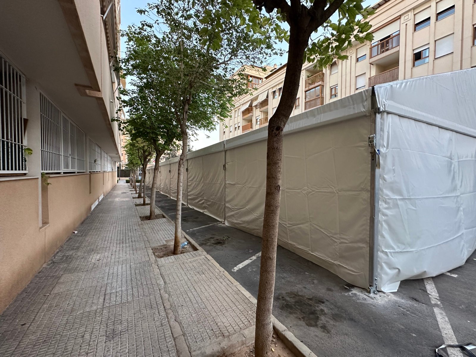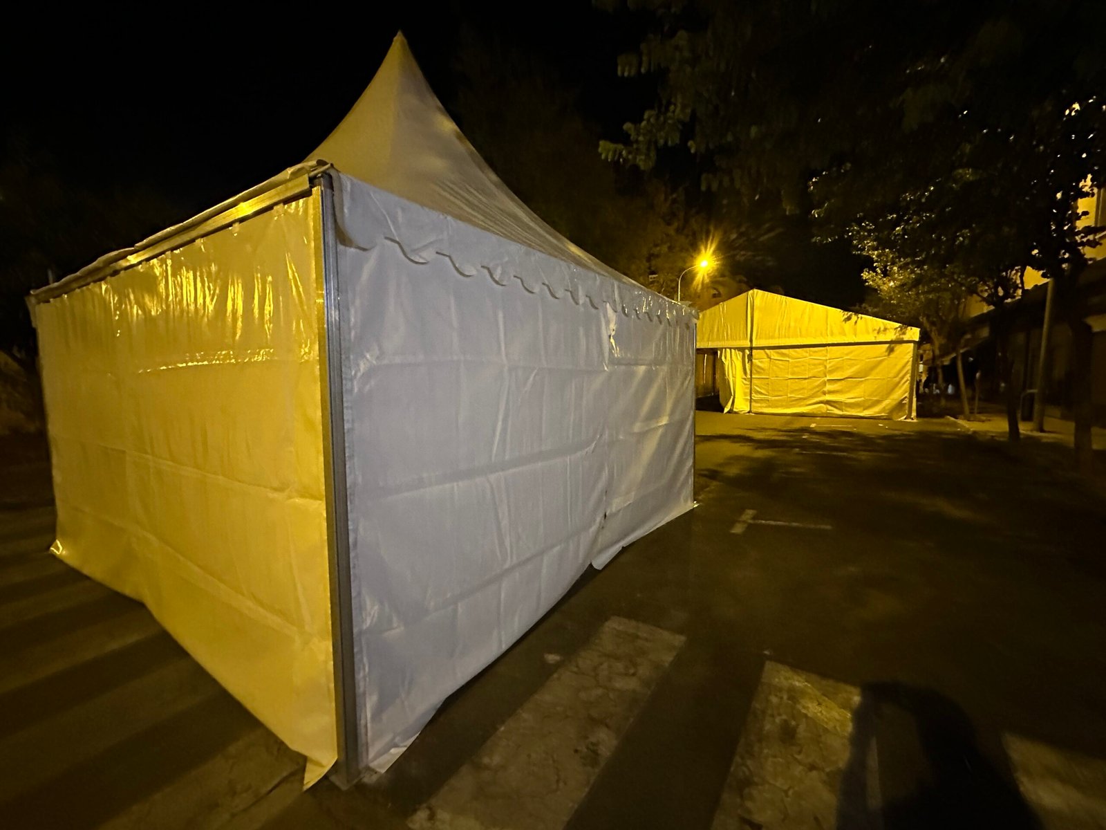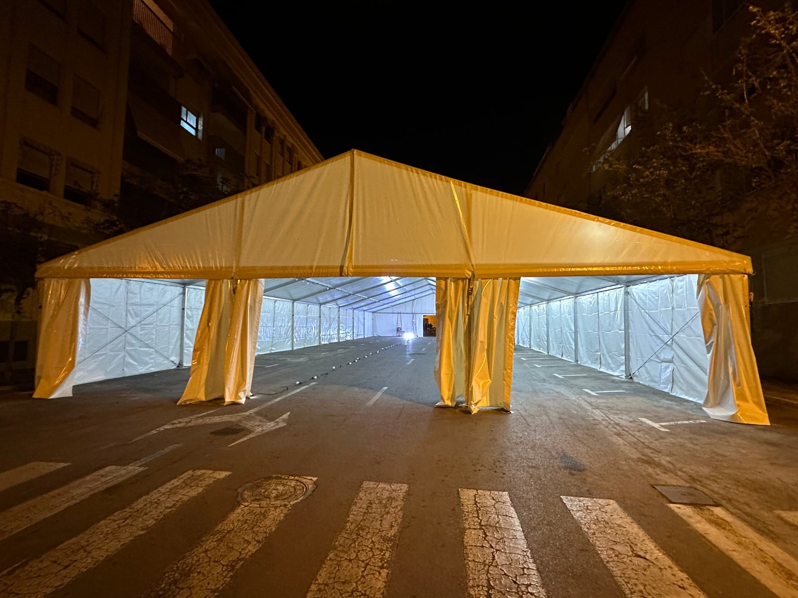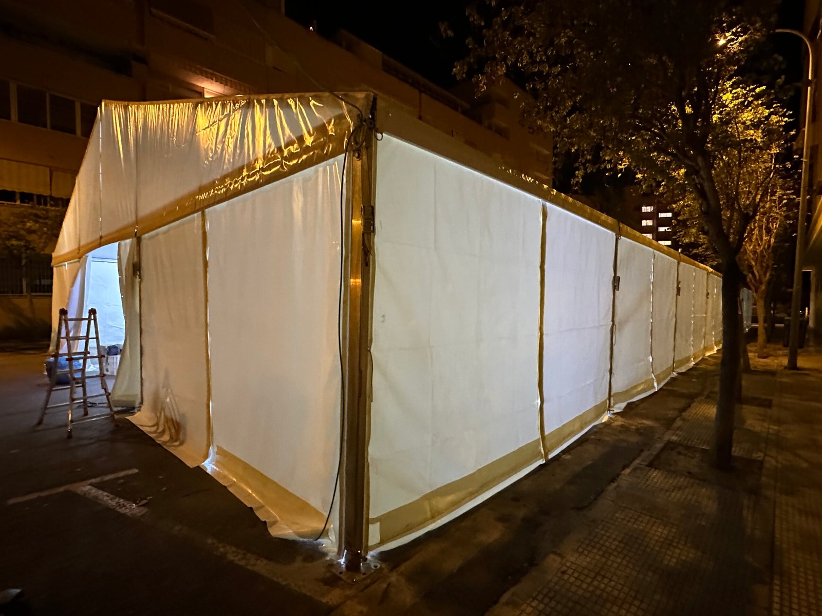 Instalación de carpas a dos aguas para las Fiestas de San Juan en Alicante