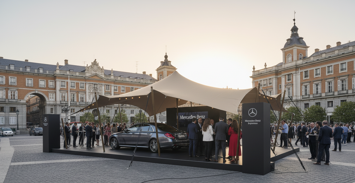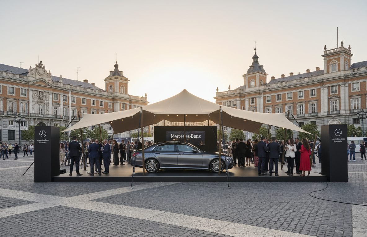 El auge de las carpas stretch en el ámbito corporativo se debe a su capacidad para crear atmósferas exclusivas sin necesidad de construcciones permanentes. Desde eventos automovilísticos, stands en ferias, conciertos, cócteles empresariales o presentaciones de lujo, estas carpas aportan una imagen cuidada, elegante y fácilmente personalizable con iluminación, señalética o branding.