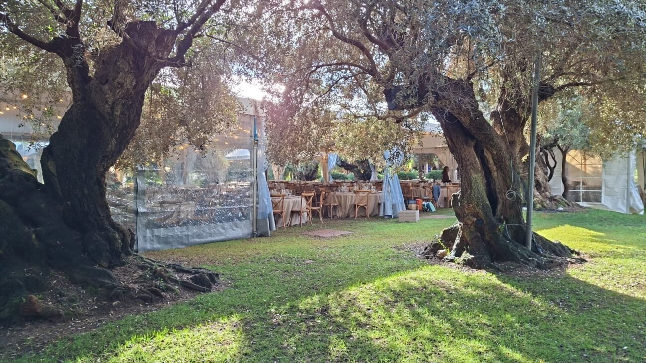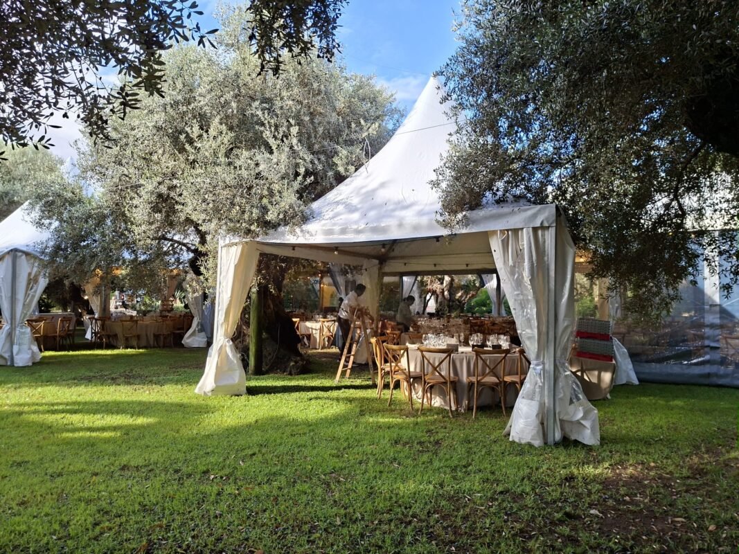 Magia y elegancia bajo los olivos: instalación de jaimas y carpas transparentes en Elche por Cerramientos Arkia